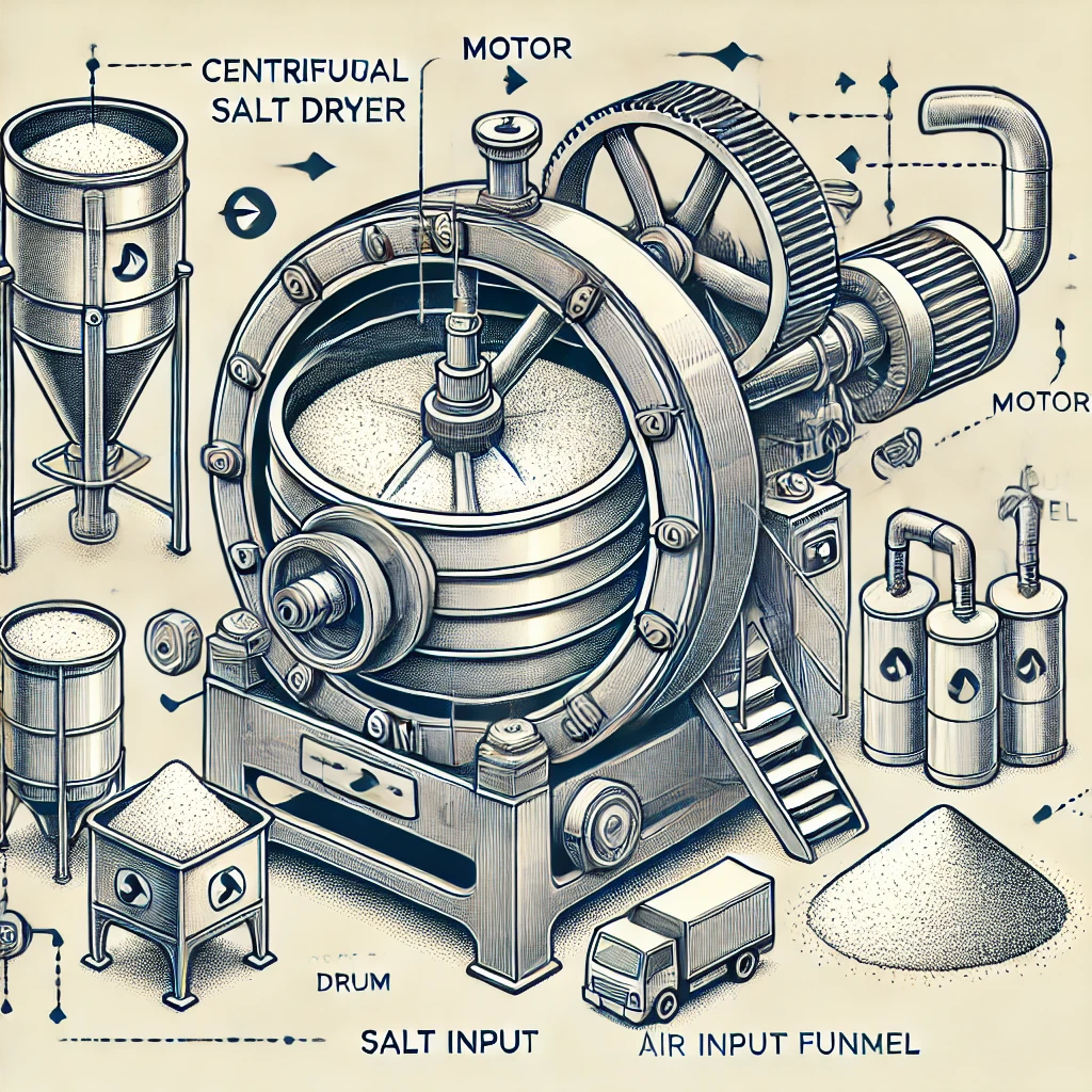 The design, construction, and performance testing of a centrifugal salt dryer** involved developing a machine to efficiently remove moisture from salt through centrifugal force. Key components included a perforated drum, motor, and housing. The machine was fabricated using locally available materials, tested under varying speeds and loads, and demonstrated significant efficiency in drying salt, with optimal performance achieved at specific speed and load conditions.